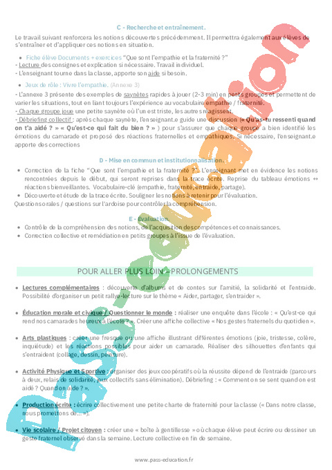 1. Fiche de préparation Vivre ensemble avec empathie et fraternité CE1 pdf