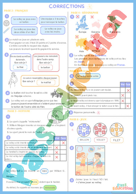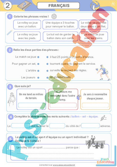 Cahier de vacances à imprimer : Volley.